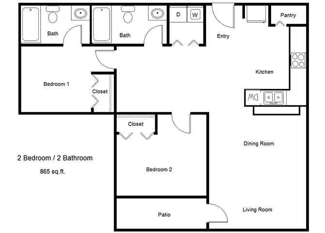 Modelo de apartamento: Two Bedroom2 Dormitorios, 2 Baños, 865 sq ftNo Disponible![]()