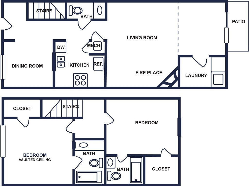 Modelo de apartamento: 2 bed townhouse classic2 Dormitorios, 2.5 Baños, 1185 sq ftDisponible AhoraPlanosFotos![]()