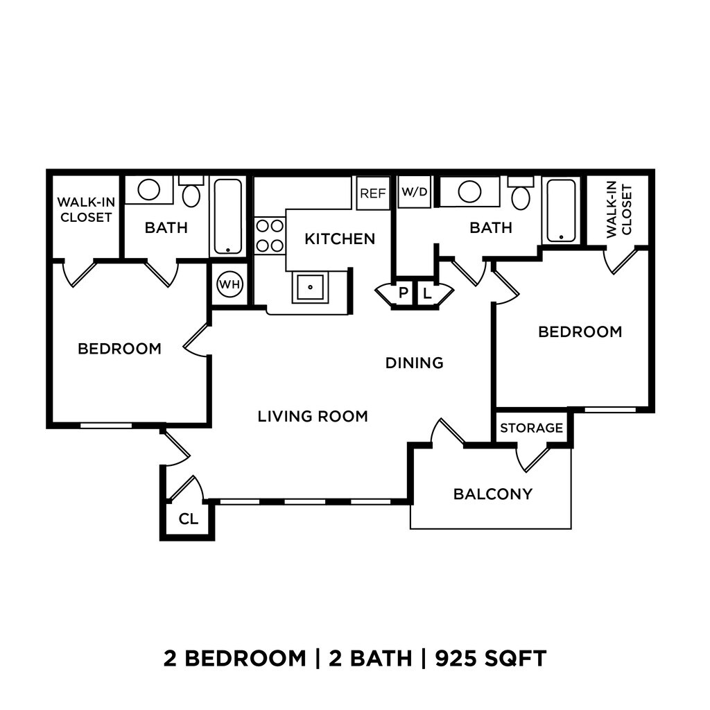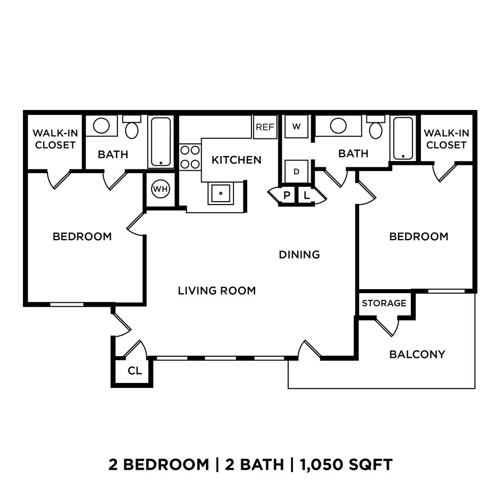 One Bedroom - Plano 2 Unidad de apartamento: 1515Modelo de apartamento: One Bedroom$1,1101 Dormitorio, 1 Baño, 789 sq ftDisponible January 26, 20262 Dormitorios