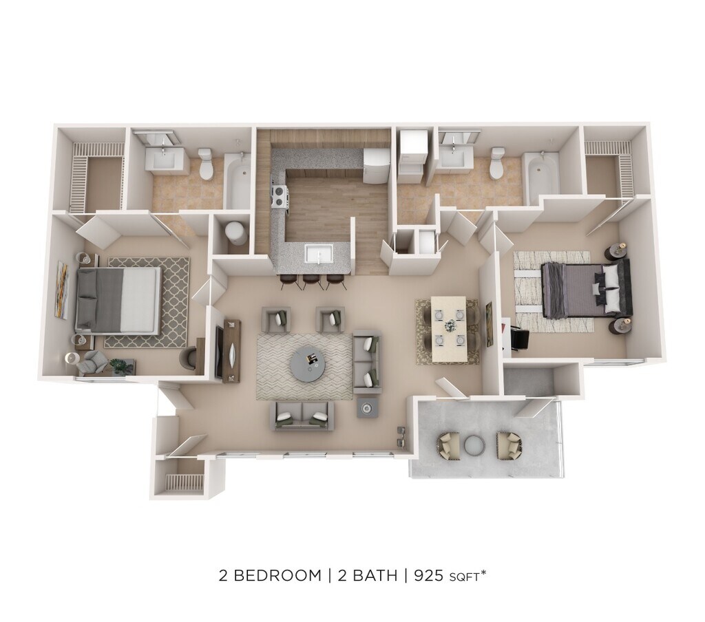1 Dormitorio, 1 Baño, 789 pies²Disponible January 26, 2026El más grandeEsta opción tiene las unidades más grandes para este modeloGalería del Modelo