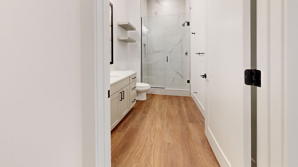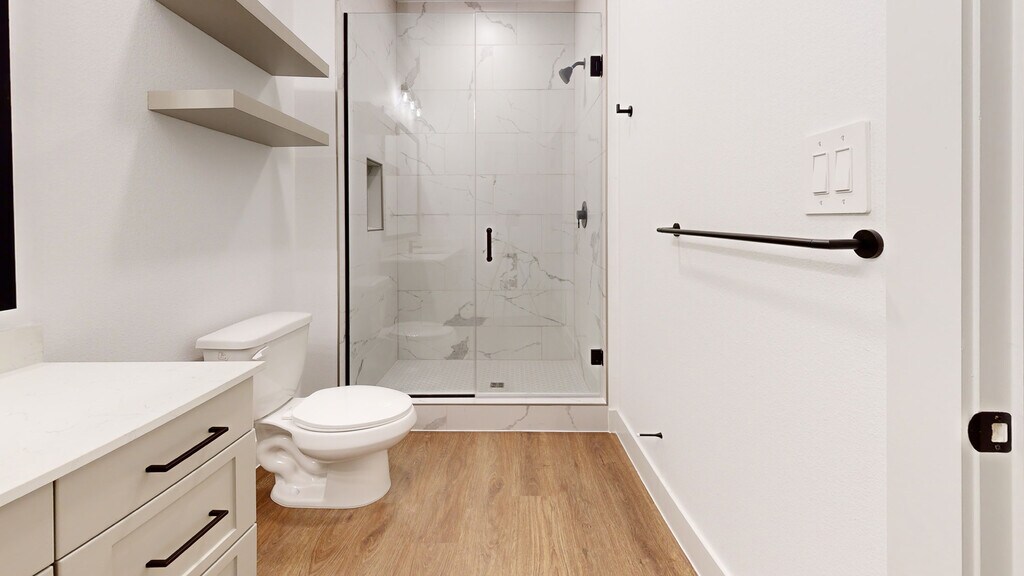 - Ducha con mampara de vidrio sin marco