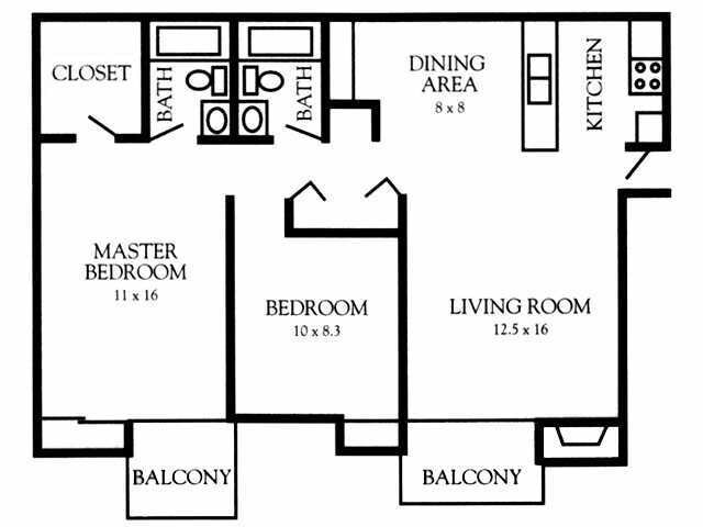 Modelo de apartamento: 2x2 Platte2 Dormitorios, 2 Baños, 955 sq ftDisponible Ahora![]()
