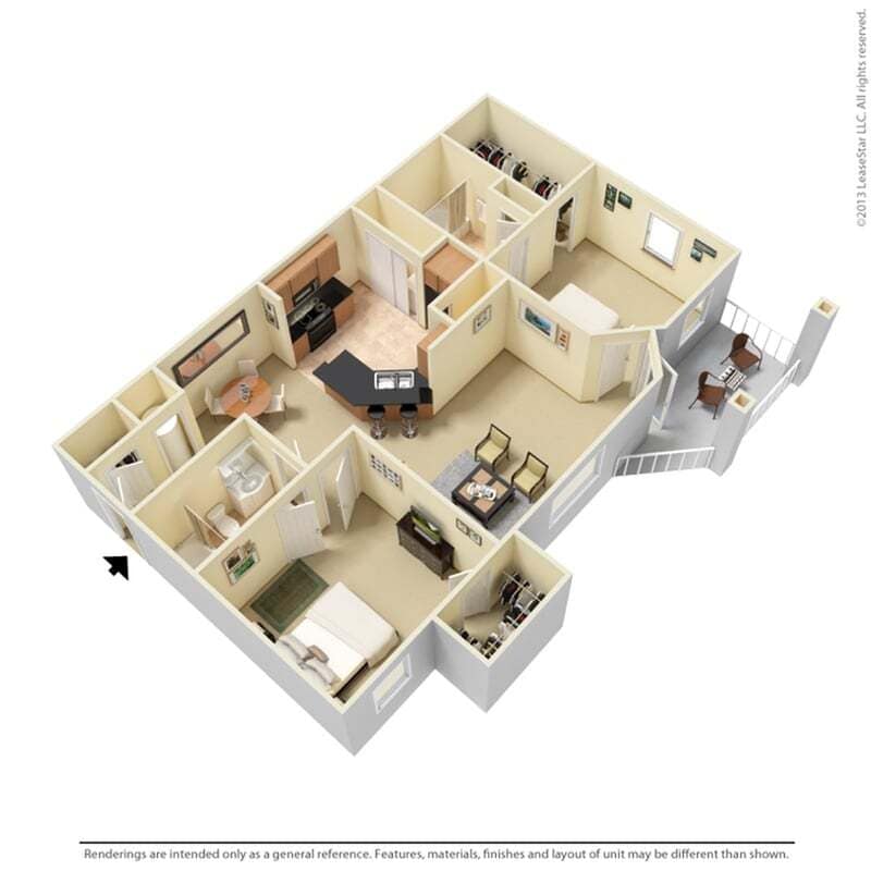 El rango de alquiler de Apartamentos 1 dormitorios a 3 dormitorios en Villas at Houston Levee East & West van desde $1,130 a $2,186