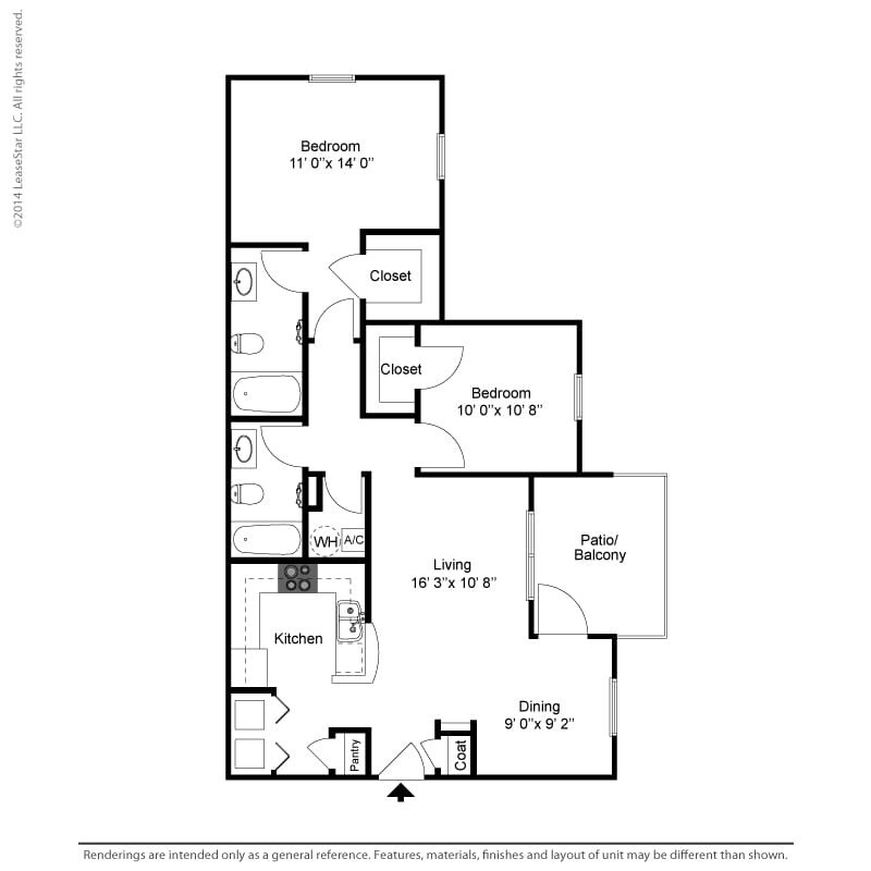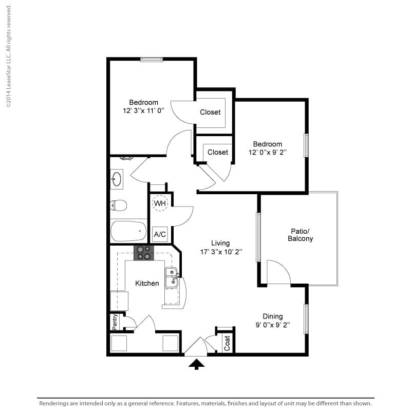 Modelo de apartamento: B2Desde $1,4842 Dormitorios, 2 Baños, 974 sq ftDisponible Ahora![]()