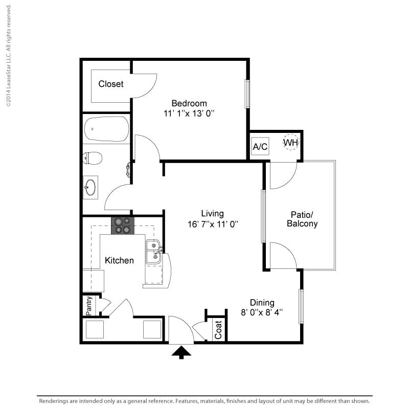 1 Dormitorio, 1 Baño, 723 pies²Disponible AhoraGalería del Modelo