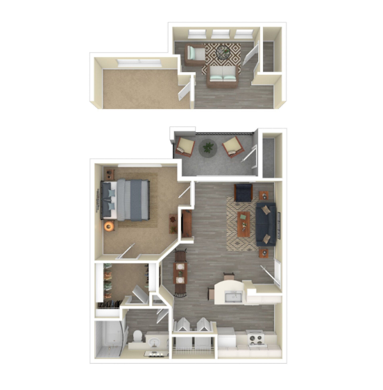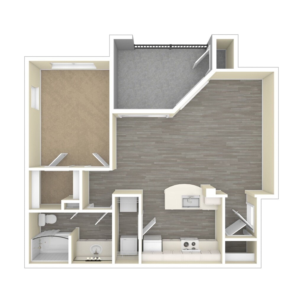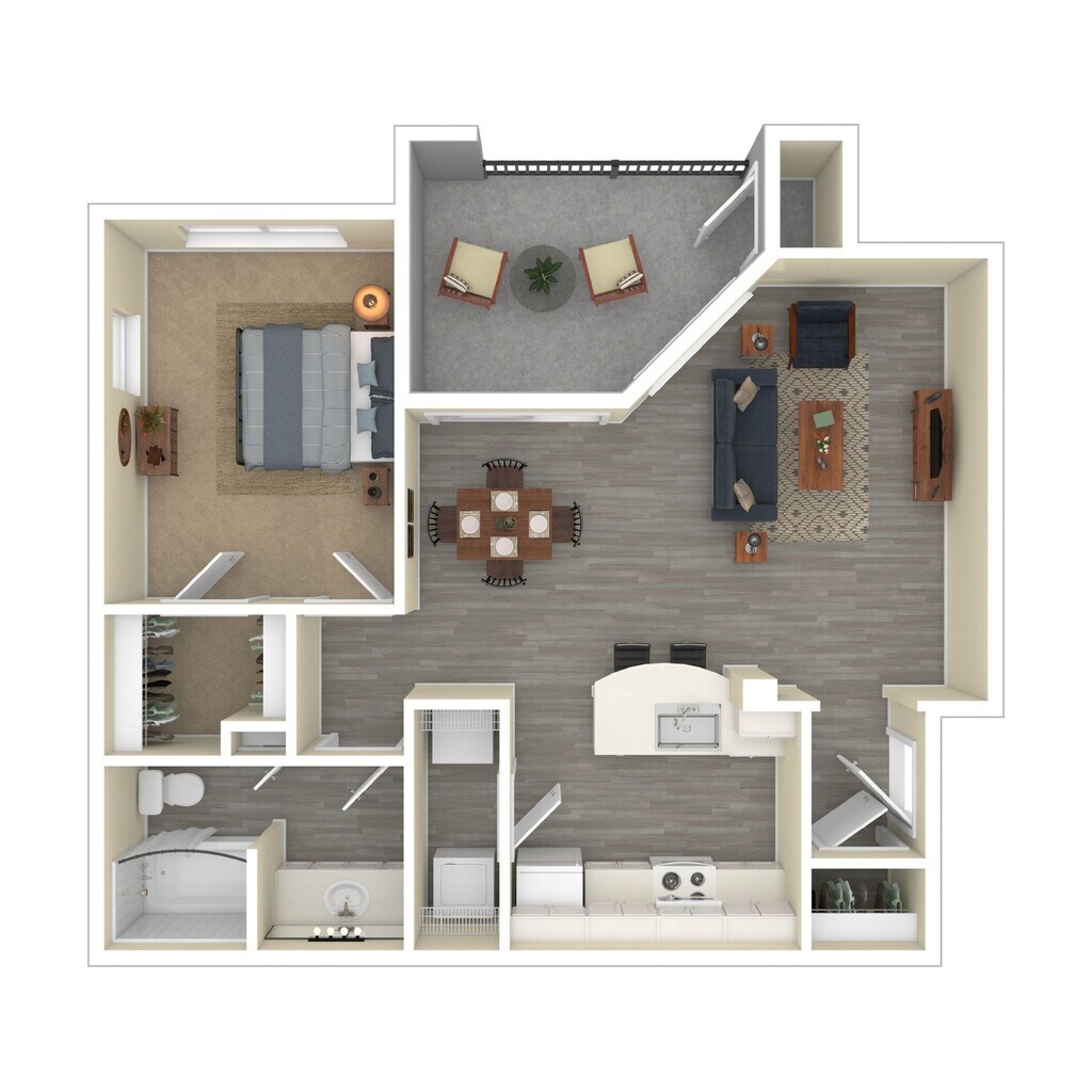 1 Dormitorio, 1 Baño, 721 pies²Disponible AhoraGalería del Modelo
