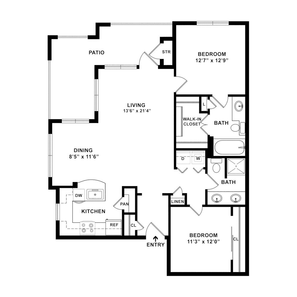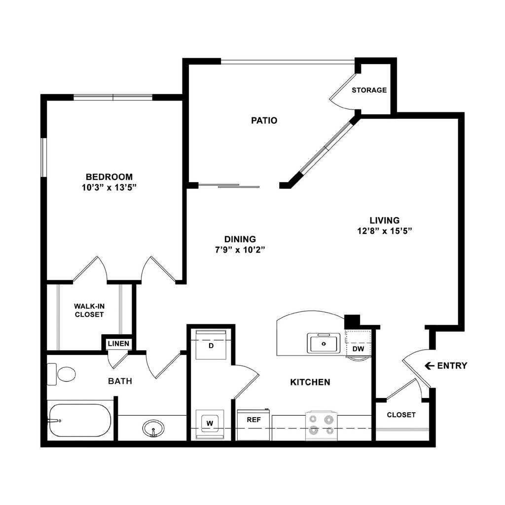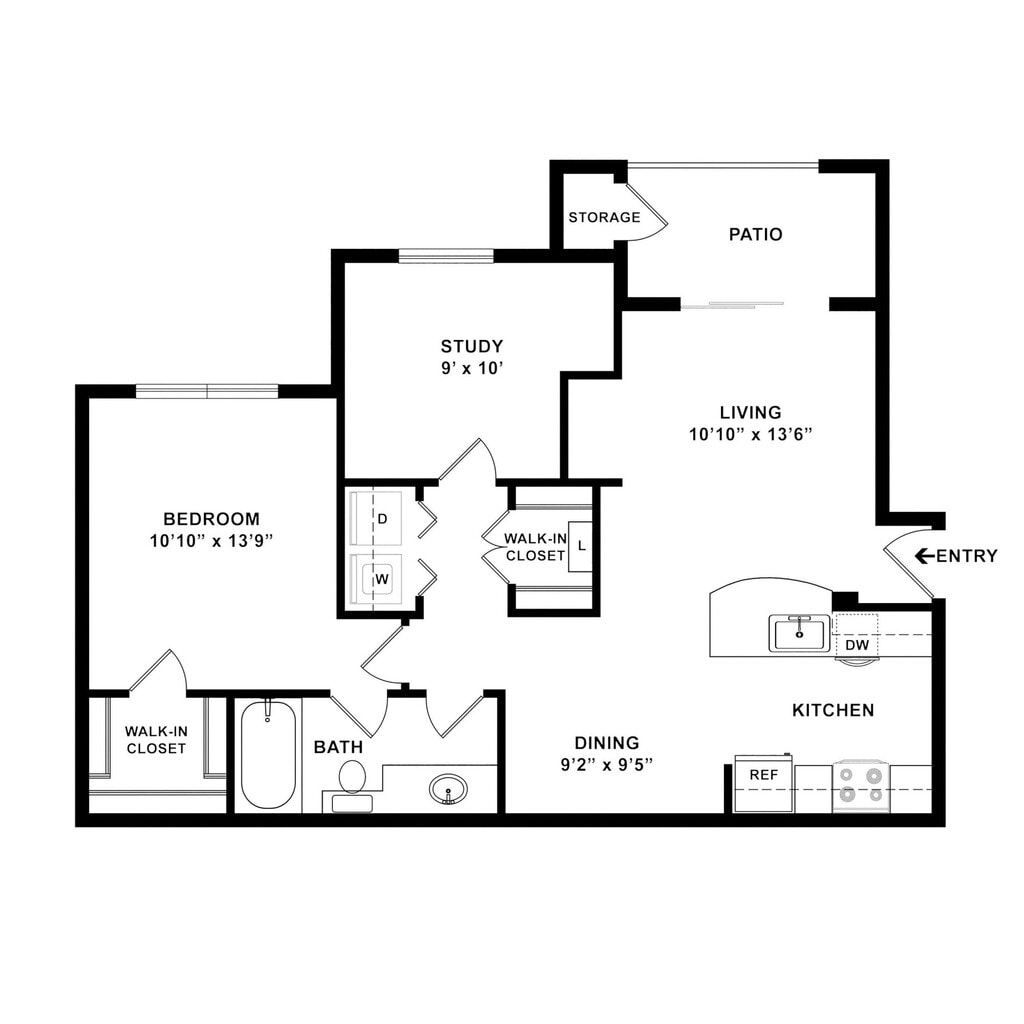 Modelo de apartamento: A1 - 1.1Desde $1,1591 Dormitorio, 1 Baño, 650 sq ftDisponible Ahora![]()