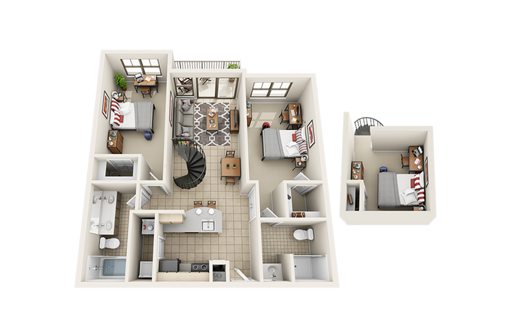 Estudio, 1 Baño, 845 pies²Disponible August 18, 2026El más grandeEsta opción tiene las unidades más grandes para este modeloGalería del Modelo