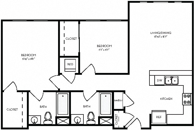 1 Dormitorio, 2 Baños, 956 pies²Disponible AhoraEl más grandeEsta opción tiene las unidades más grandes para este modeloGalería del Modelo