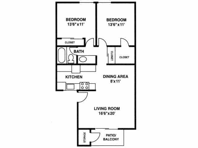 Modelo de apartamento: B1Llame para Precios2 Dormitorios, 1 Baño, 850 sq ftDisponible Ahora![]()