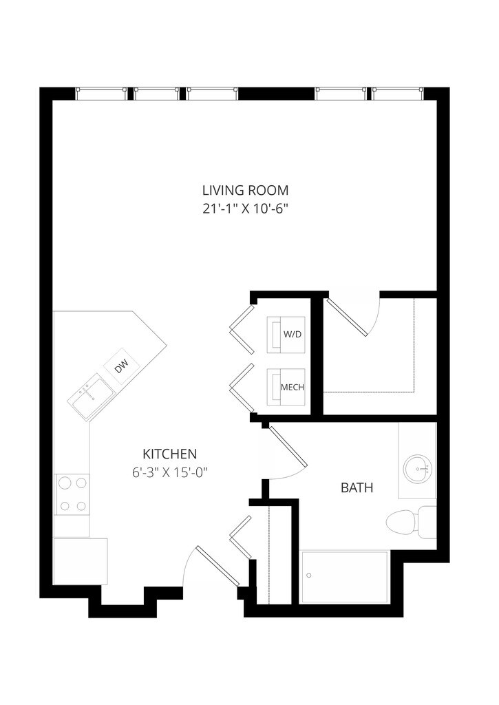 Estudio, 1 Baño, 500 pies²Disponible AhoraGalería del Modelo