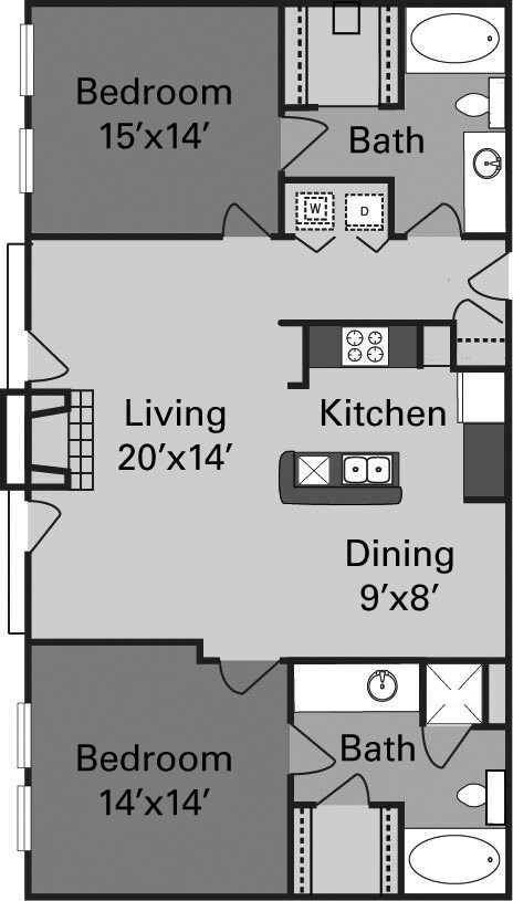 2 Dormitorios, 2 Baños, 1061 pies²Galería del Modelo