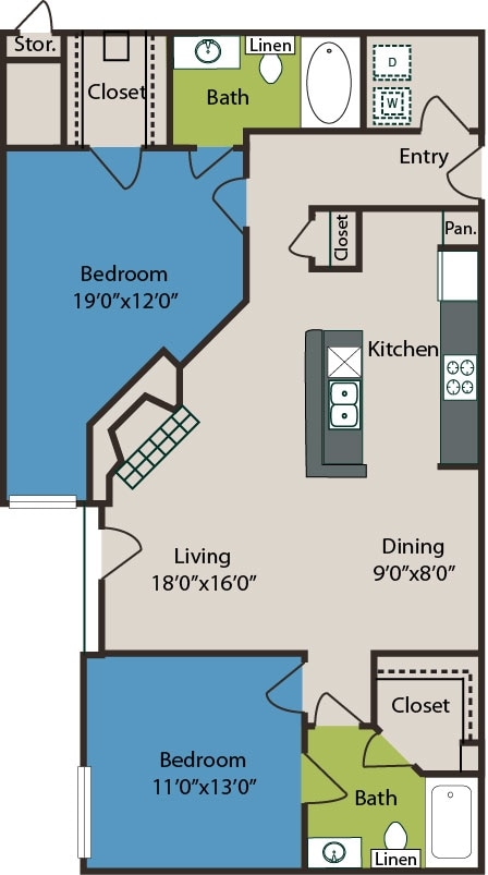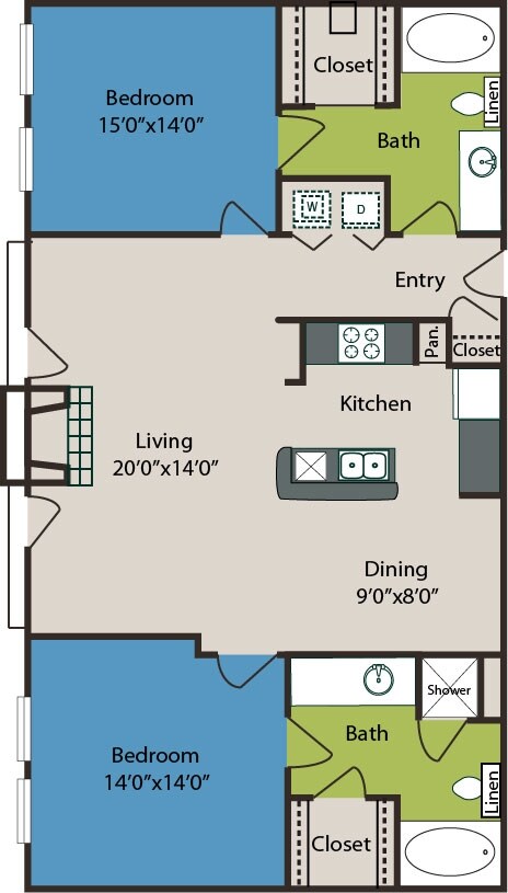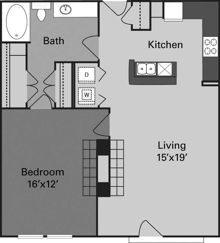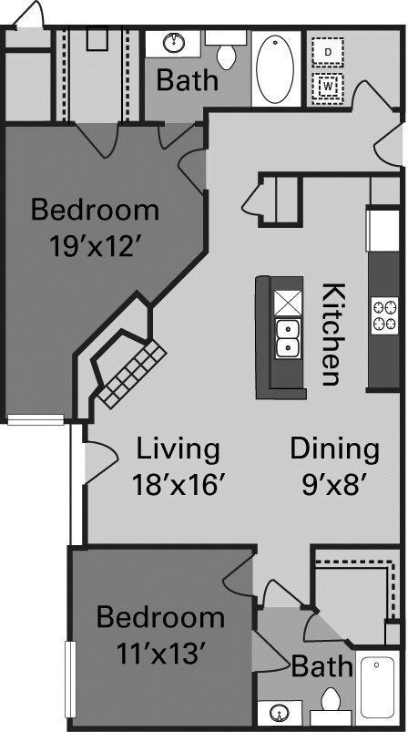 1 Dormitorio, 1 Baño, 1022 pies²El más grandeEsta opción tiene las unidades más grandes para este modeloGalería del Modelo