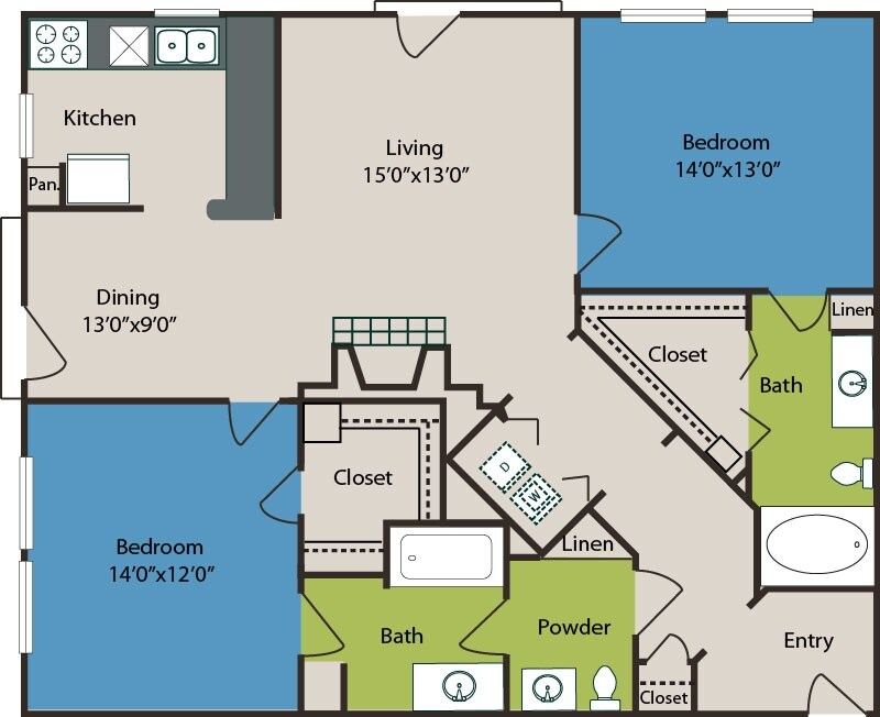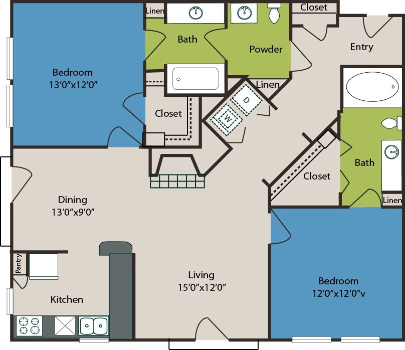 Modelo de apartamento: B32 Dormitorios, 2 Baños, 1061 sq ftNo Disponible![]()