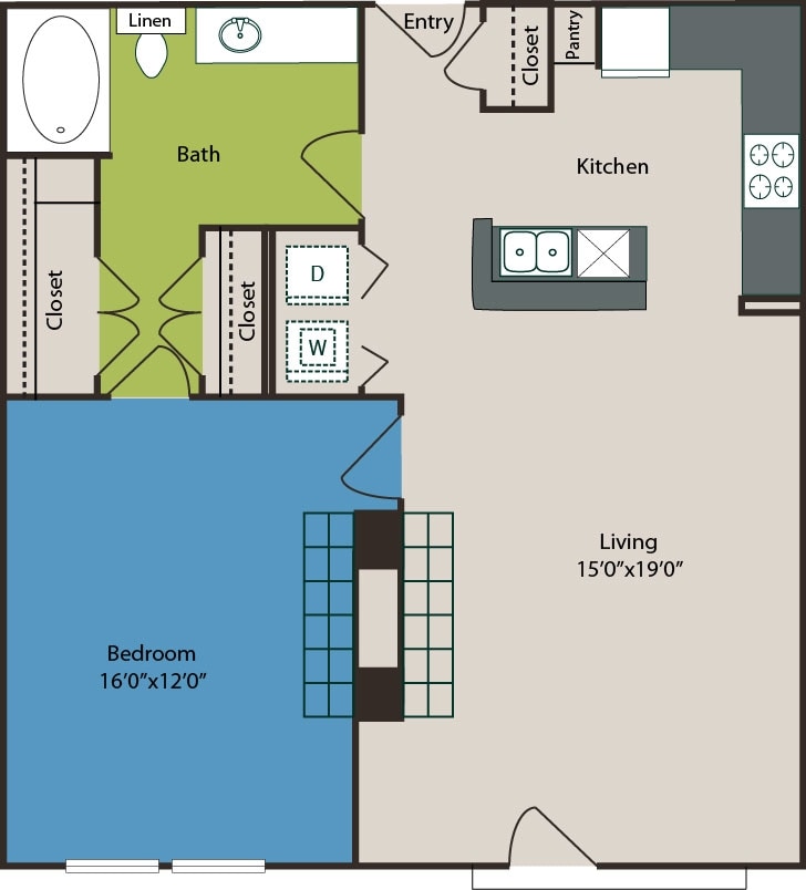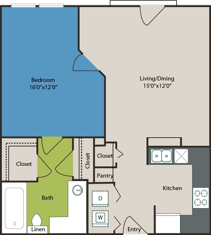 Modelo de apartamento: A41 Dormitorio, 1 Baño, 675 sq ftNo Disponible![]()