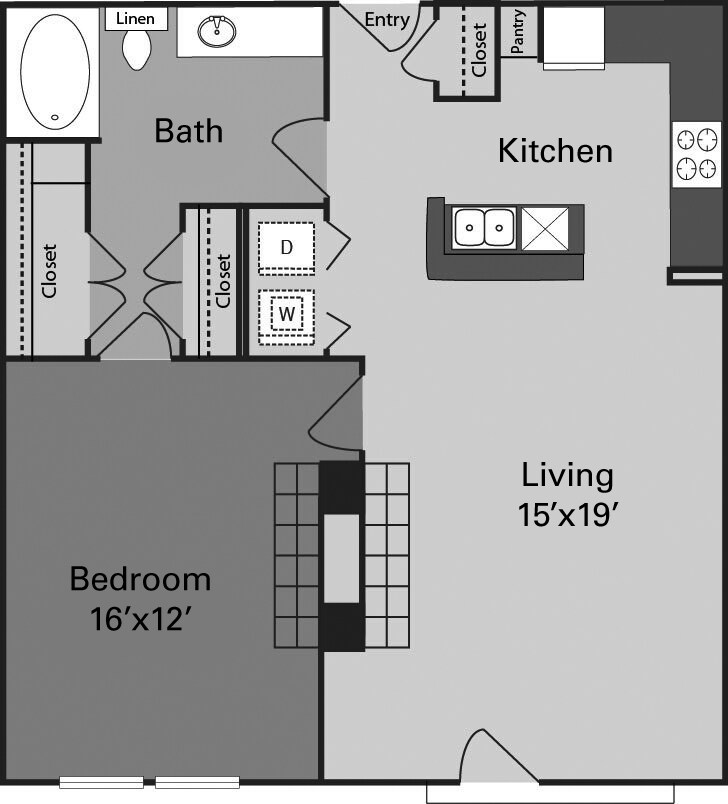 1 Dormitorio, 1 Baño, 840 pies²Galería del Modelo