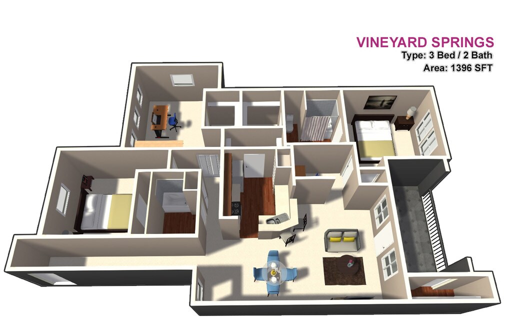 3 Dormitorios, 2 Baños, 1346 pies²Galería del Modelo