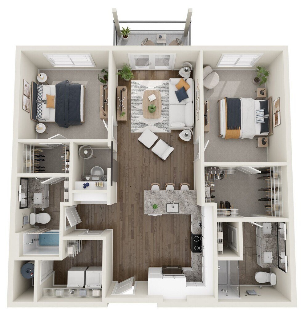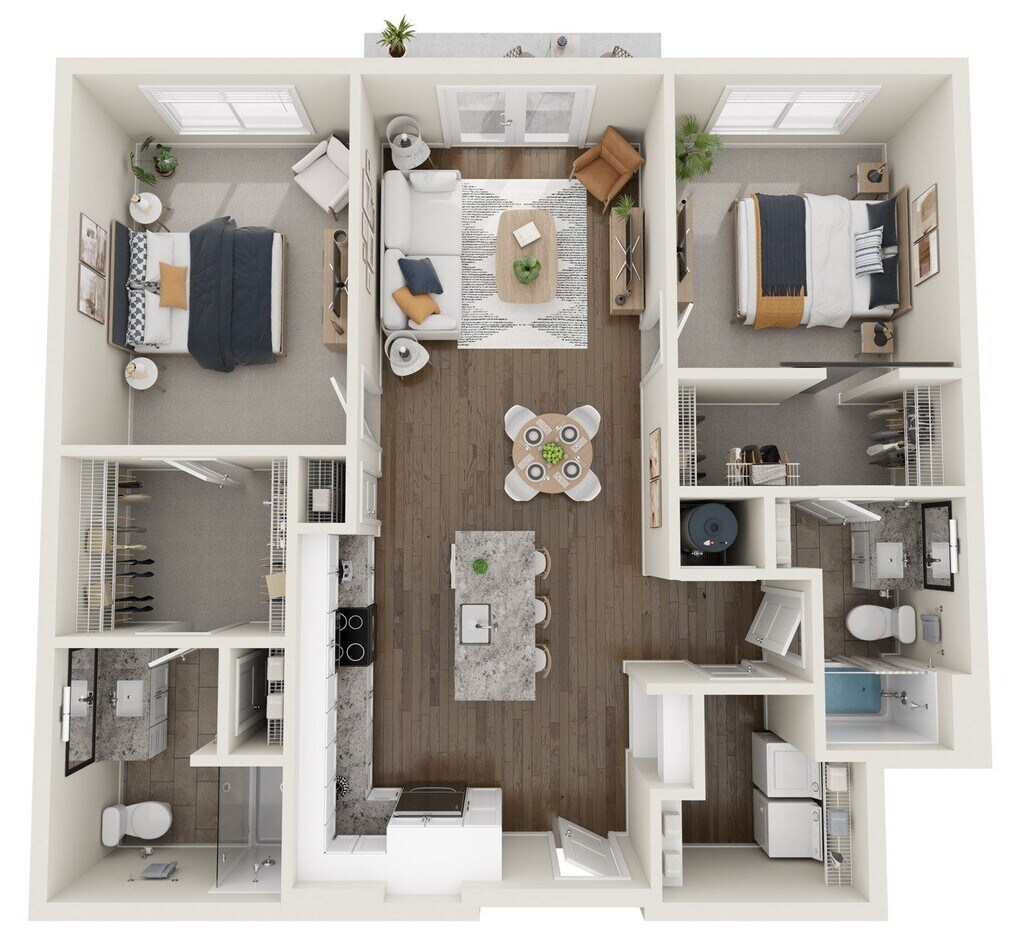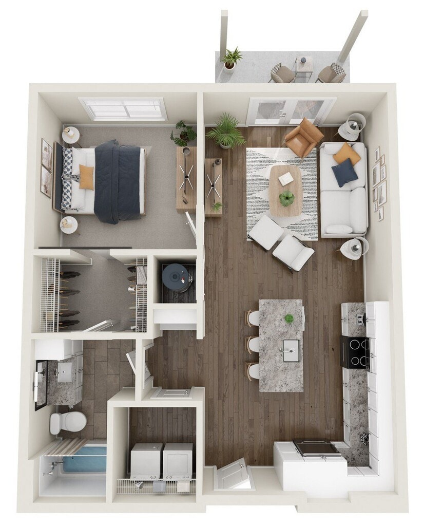 1 Dormitorio, 1 Baño, 755 pies²Disponible AhoraGalería del Modelo