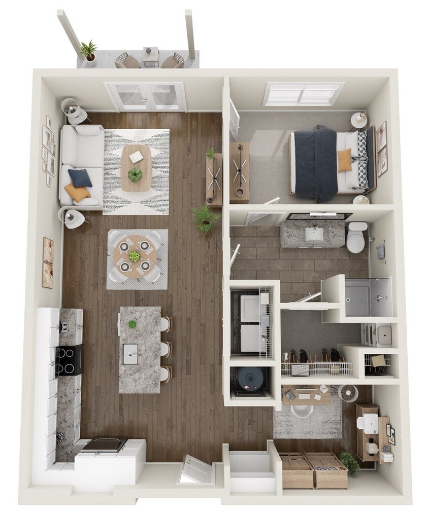 Modelo de apartamento: A1Desde $1,4121 Dormitorio, 1 Baño, 755 sq ftDisponible Ahora![]()