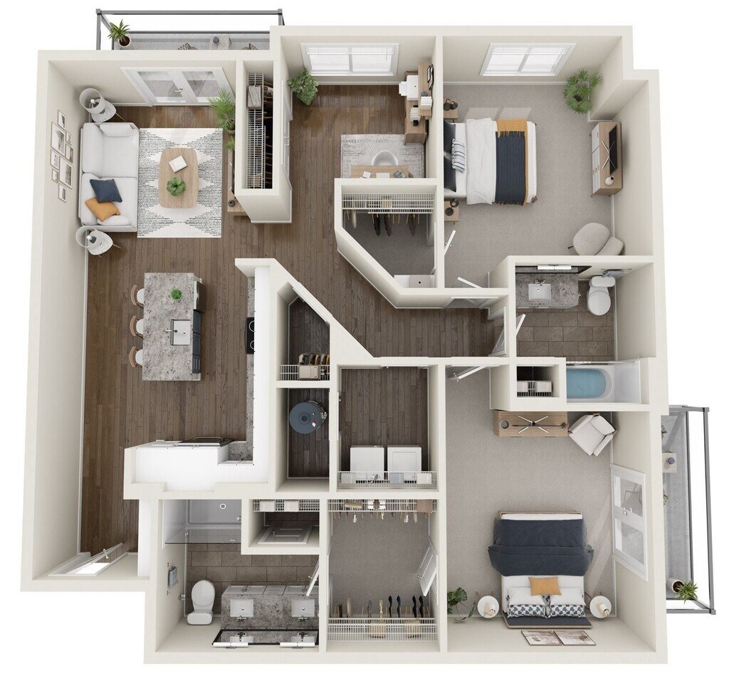 Modelo de apartamento: A3Desde $1,4371 Dormitorio, 1 Baño, 755 sq ftDisponible Ahora![]()