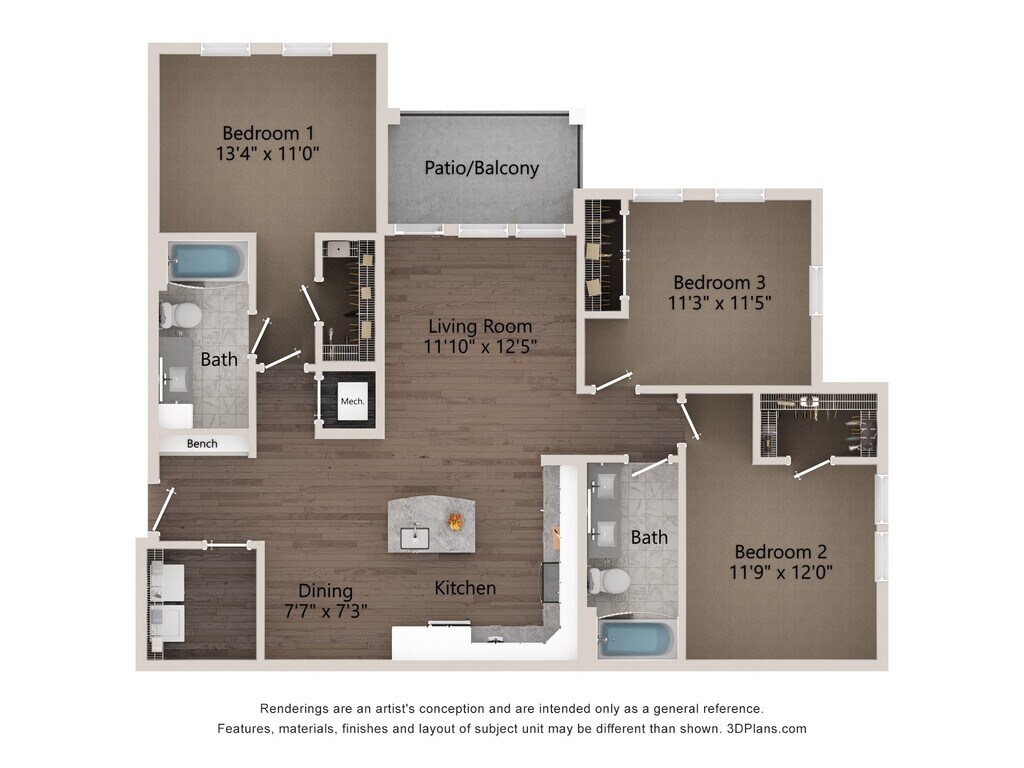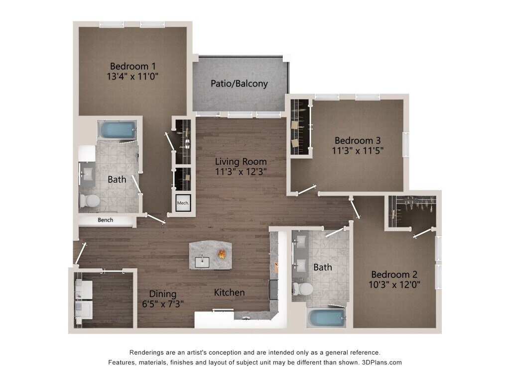 A1C - Plano 1 Unidad de apartamento: 3-116Modelo de apartamento: A1C$1,5301 Dormitorio, 1 Baño, 1049 sq ftDisponible AhoraPlano: A1B