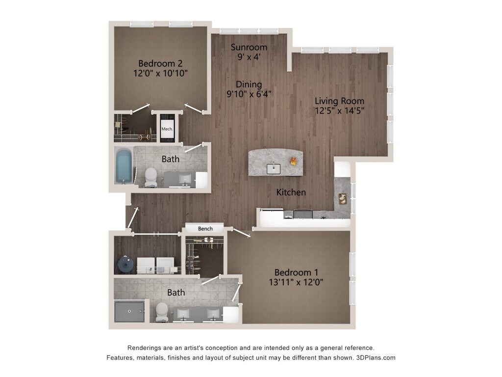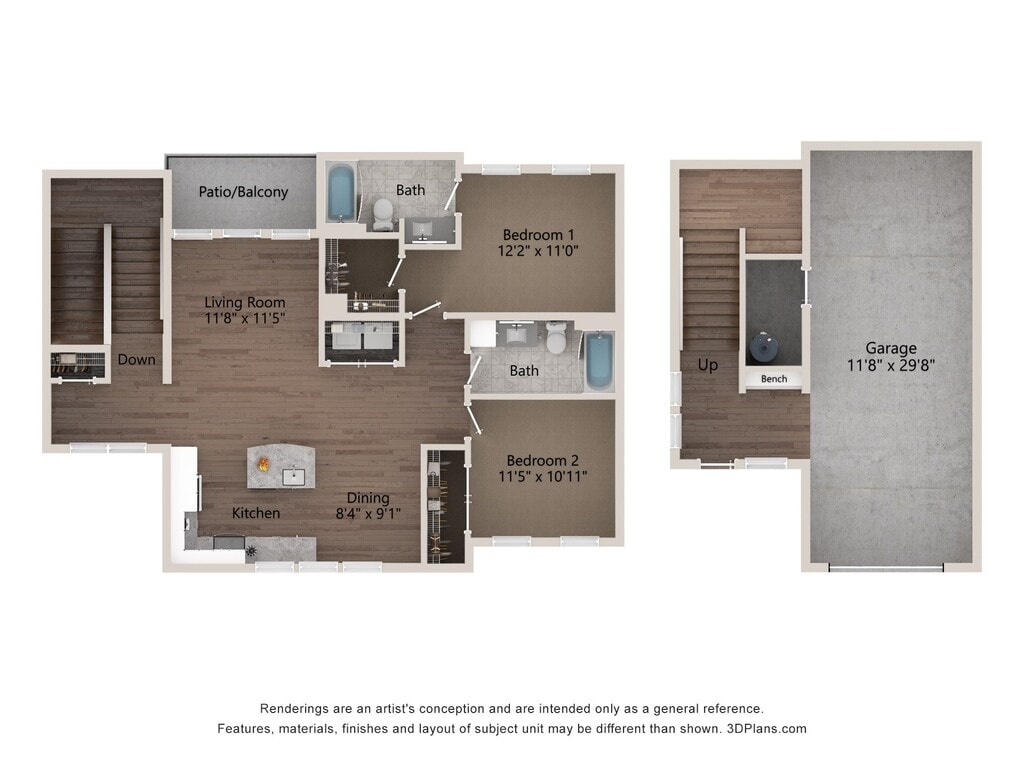 1 Dormitorio, 1 Baño, 965 pies²Galería del Modelo