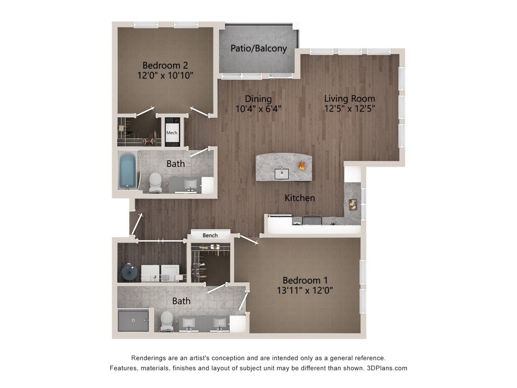 Modelo de apartamento: A1CDesde $1,5301 Dormitorio, 1 Baño, 1049 sq ftDisponible Ahora![]()