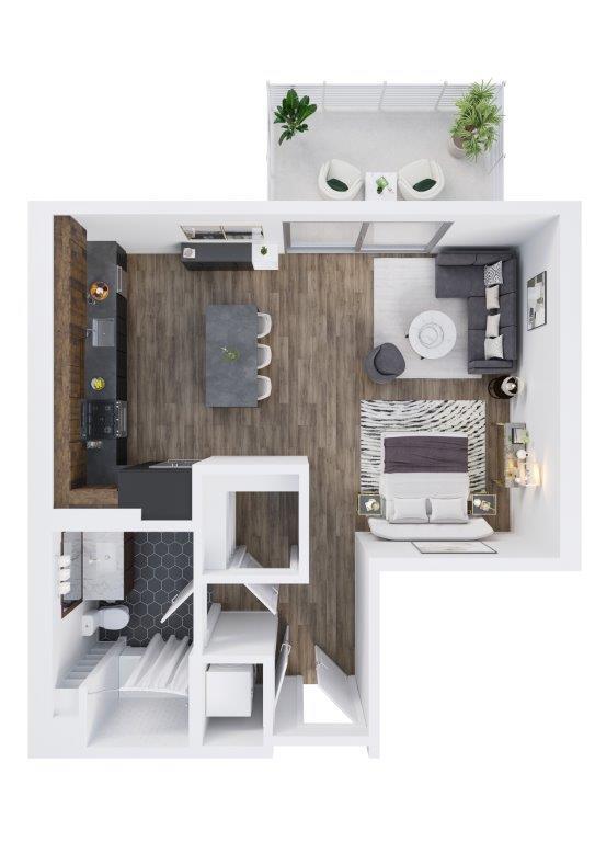 Modelo de apartamento: E3Desde $2,721Estudio, 1 Baño, 648 sq ftDisponible December 25, 2025![]()