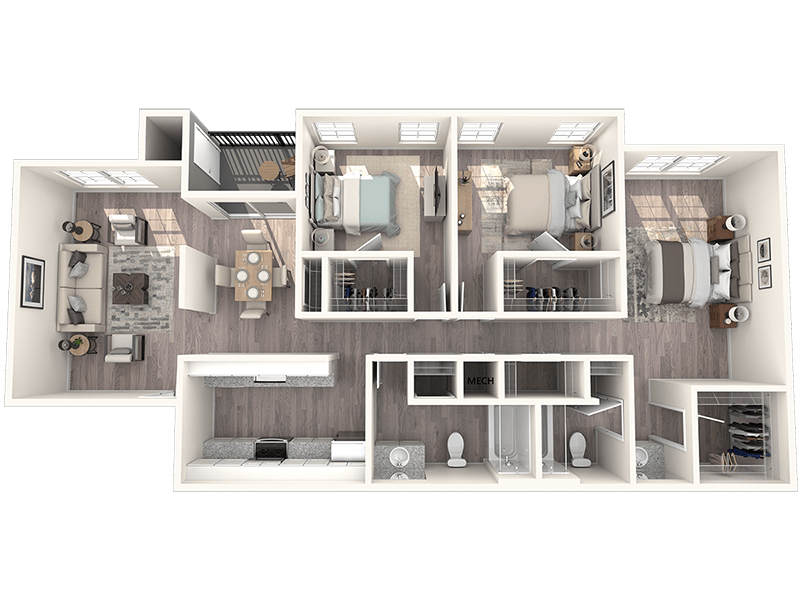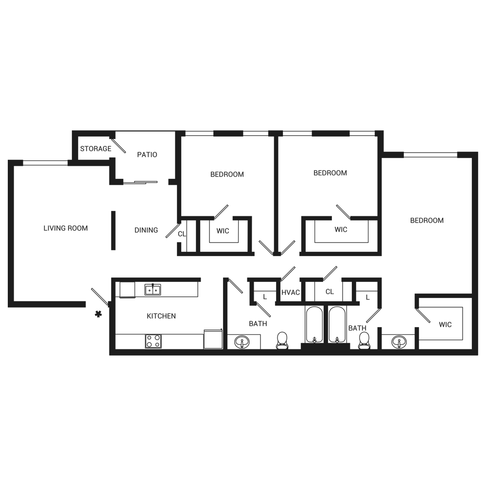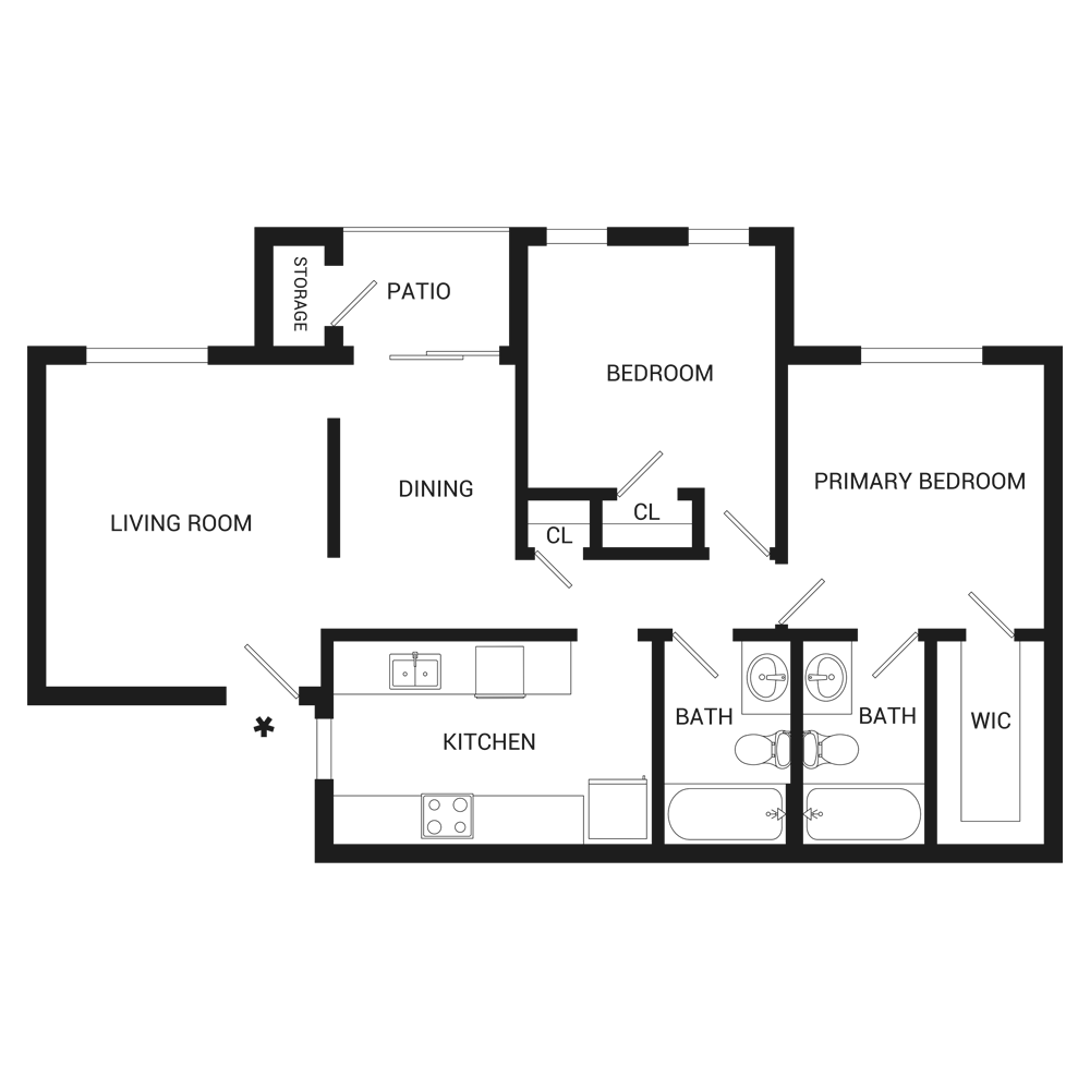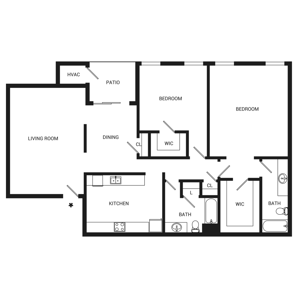 Modelo de apartamento: LilyDesde $1,3331 Dormitorio, 1 Baño, 725 sq ftDisponible Ahora![]()