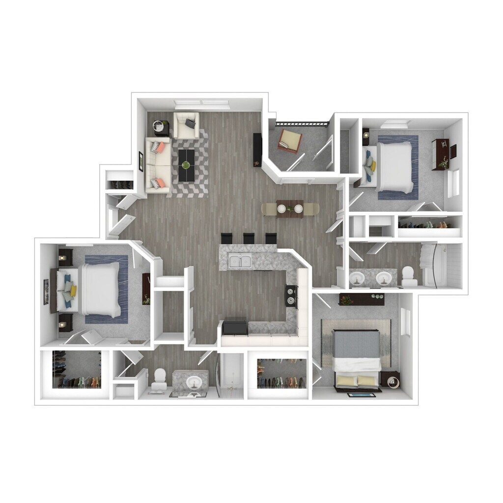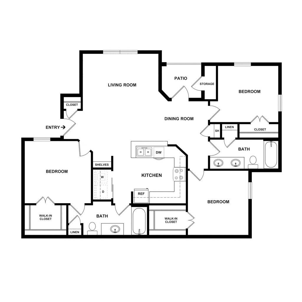 Modelo de apartamento: Three BedroomLlame para Precios3 Dormitorios, 2 Baños, 1200 sq ftNo Disponible![]()
