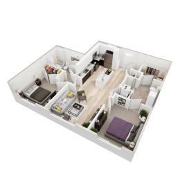 Modelo de apartamento: AmethystDesde $1,4051 Dormitorio, 1 Baño, 666-669 sq ftDisponible Ahora![]()