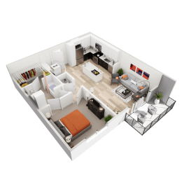 Modelo de apartamento: WaveDesde $1,5251 Dormitorio, 1 Baño, 799 sq ftDisponible Ahora![]()