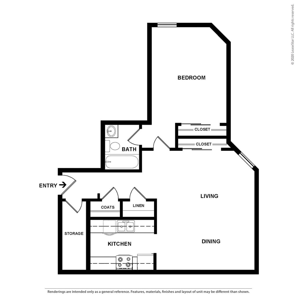 1 Dormitorio, 1 Baño, 605 pies²Disponible AhoraGalería del Modelo