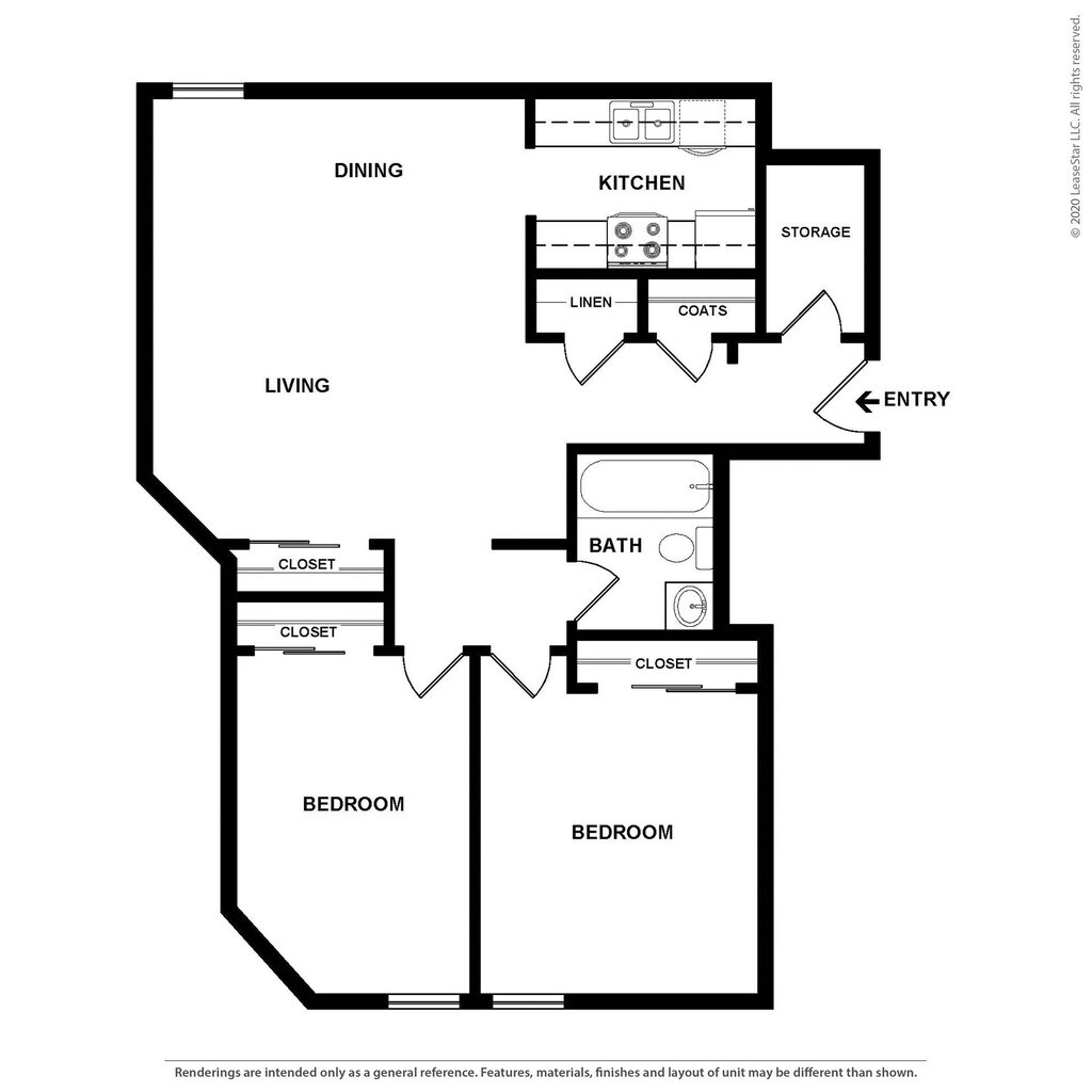 2 Dormitorios, 1 Baño, 725 pies²Disponible AhoraGalería del Modelo