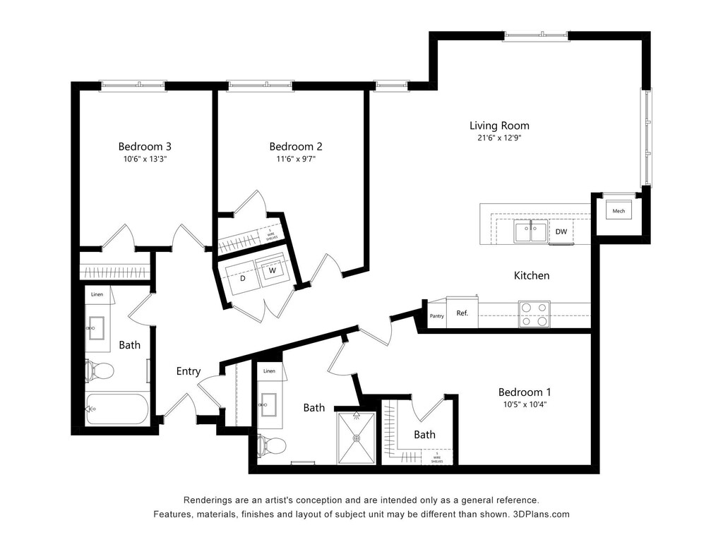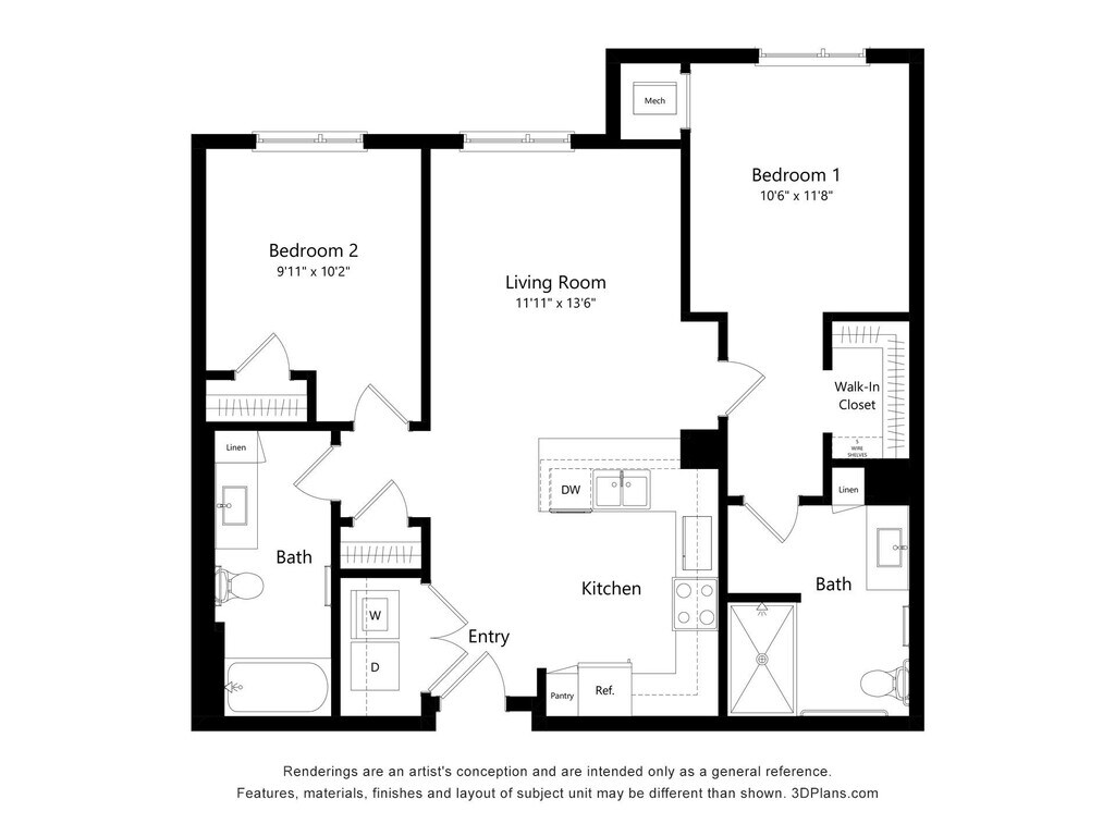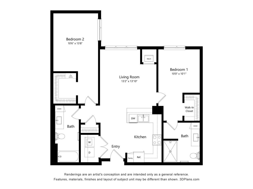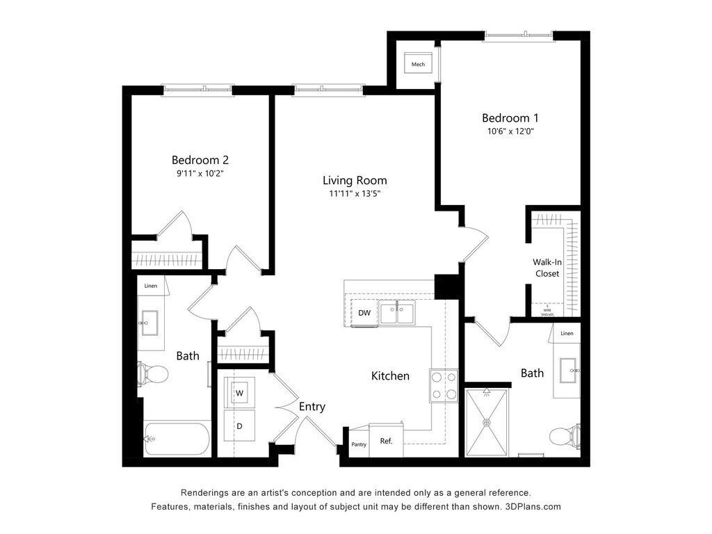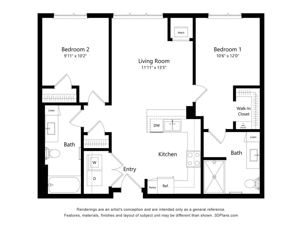 2 Bedroom 2 Bathroom - Plano 3 ![]()