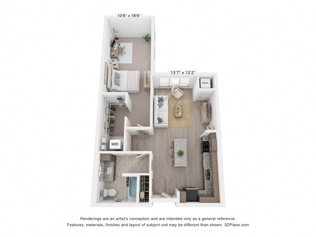 1 Dormitorio, 1 Baño, 658 pies²Galería del Modelo
