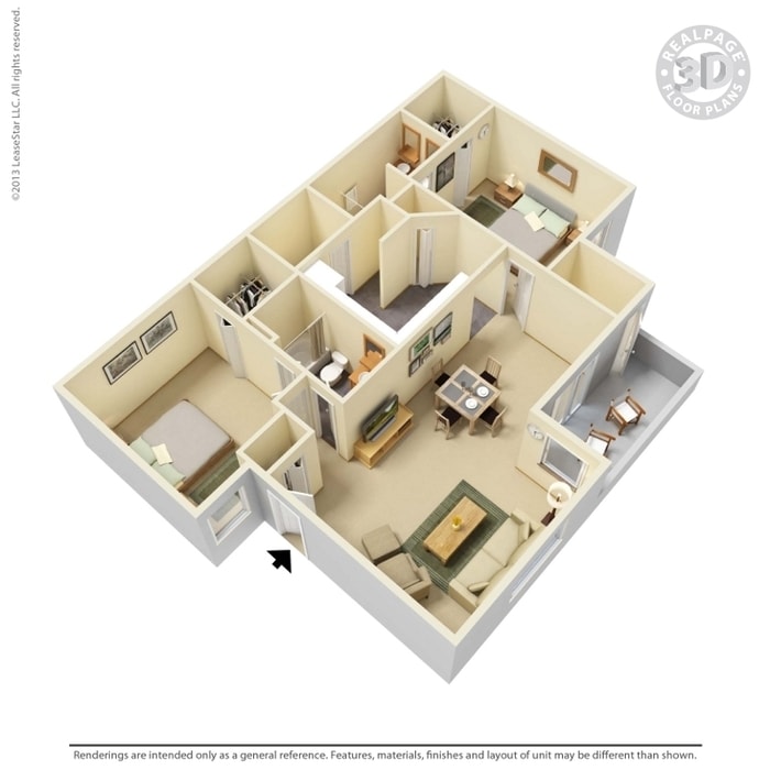 Modelo de apartamento: 3 BedroomDesde $2,7303 Dormitorios, 2 Baños, 1207 sq ftDisponible AhoraPlanosFotos![]()