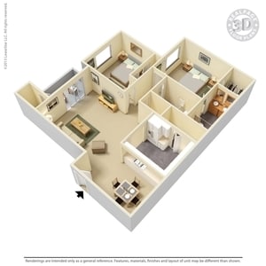 2 Bedroom Small - Plano 1 Unidad de apartamento: D102Modelo de apartamento: 2 Bedroom Small$2,5172 Dormitorios, 2 Baños, 1038 sq ftDisponible May 7, 20263 Dormitorios