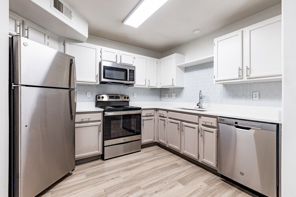 - Cocine y entretenga con estilo con las cocinas totalmente equipadas de Vista Verde, que cuentan con elegantes electrodomésticos de acero inoxidable.