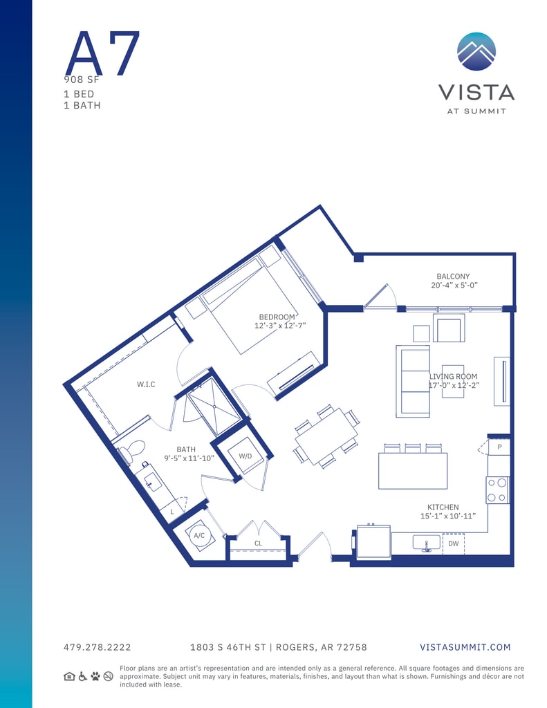 Modelo de apartamento: A7Desde $1,9001 Dormitorio, 1 Baño, 908 sq ftDisponible Ahora![]()