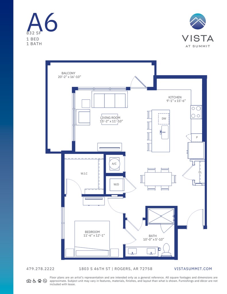 Modelo de apartamento: A6Desde $1,8501 Dormitorio, 1 Baño, 832 sq ftDisponible Ahora![]()