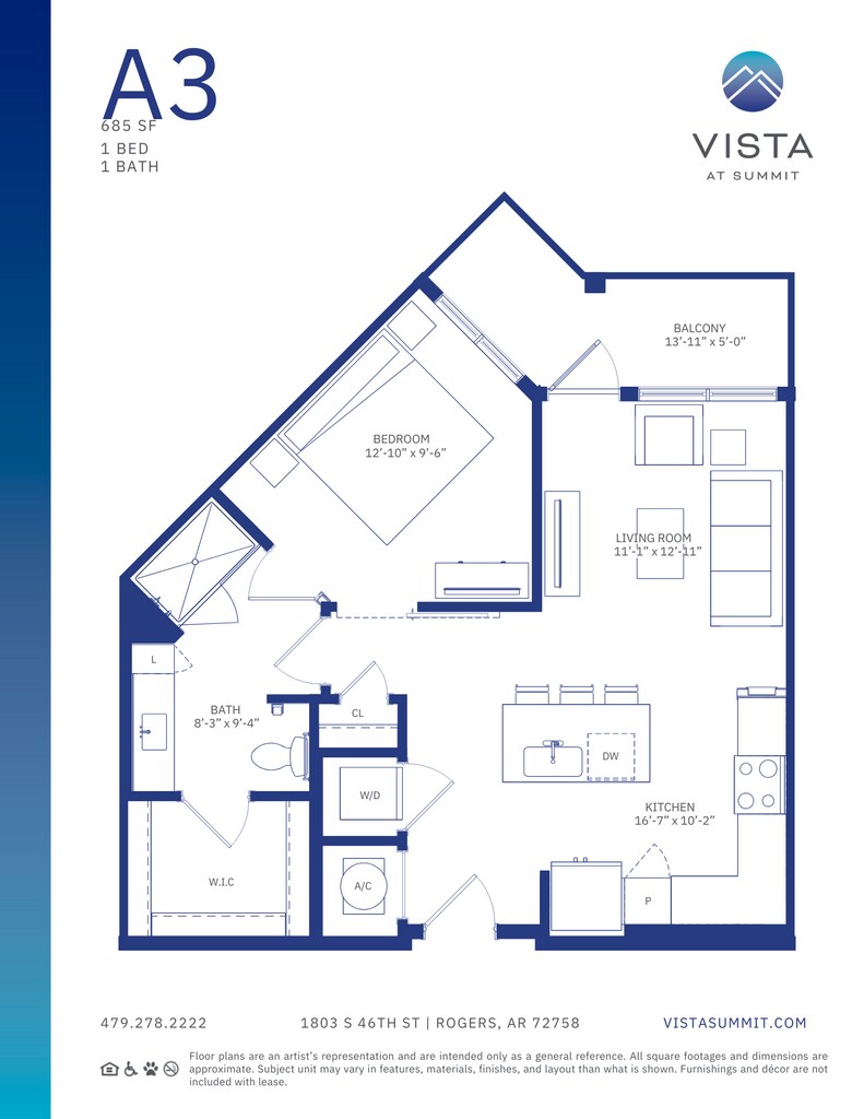 Modelo de apartamento: A3Desde $1,6001 Dormitorio, 1 Baño, 685 sq ftDisponible Ahora![]()