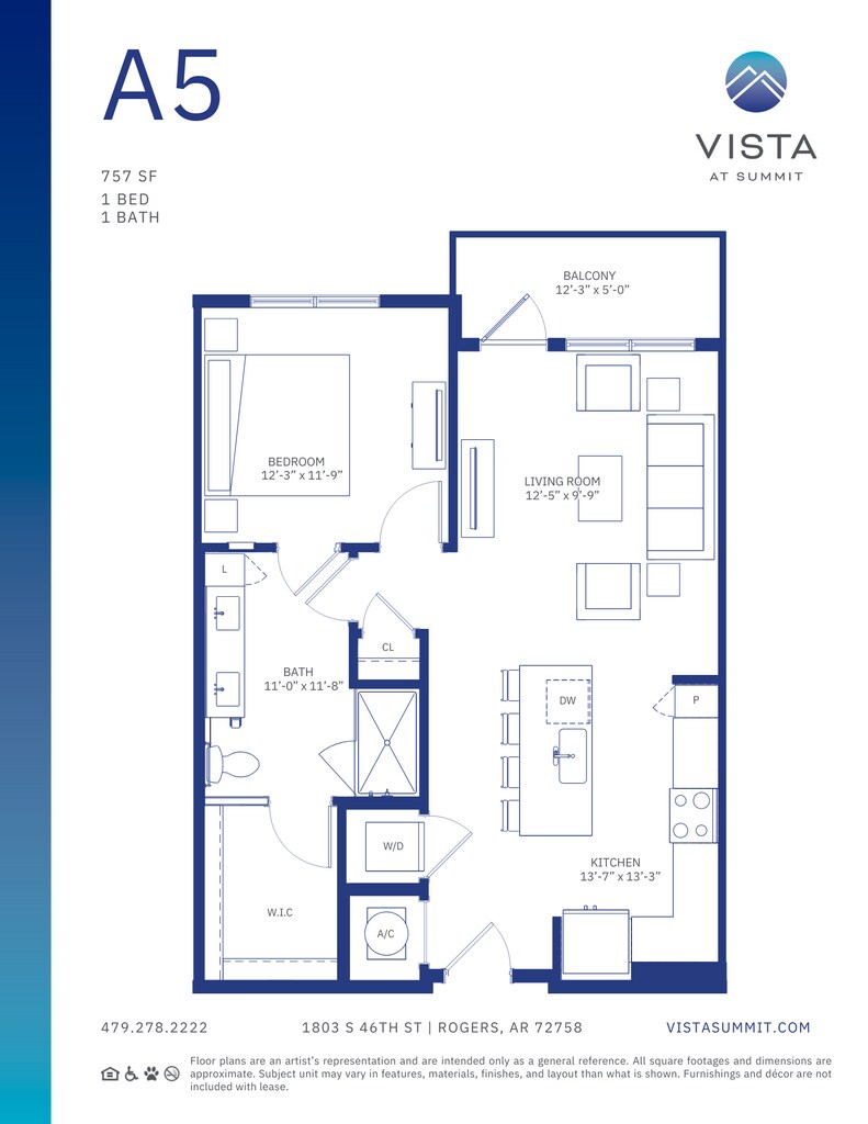 Modelo de apartamento: A5Desde $1,7001 Dormitorio, 1 Baño, 757 sq ftDisponible Ahora![]()