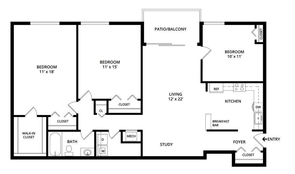 Modelo de apartamento: A1CLlame para Precios1 Dormitorio, 1 Baño, 912 sq ftNo Disponible![]()