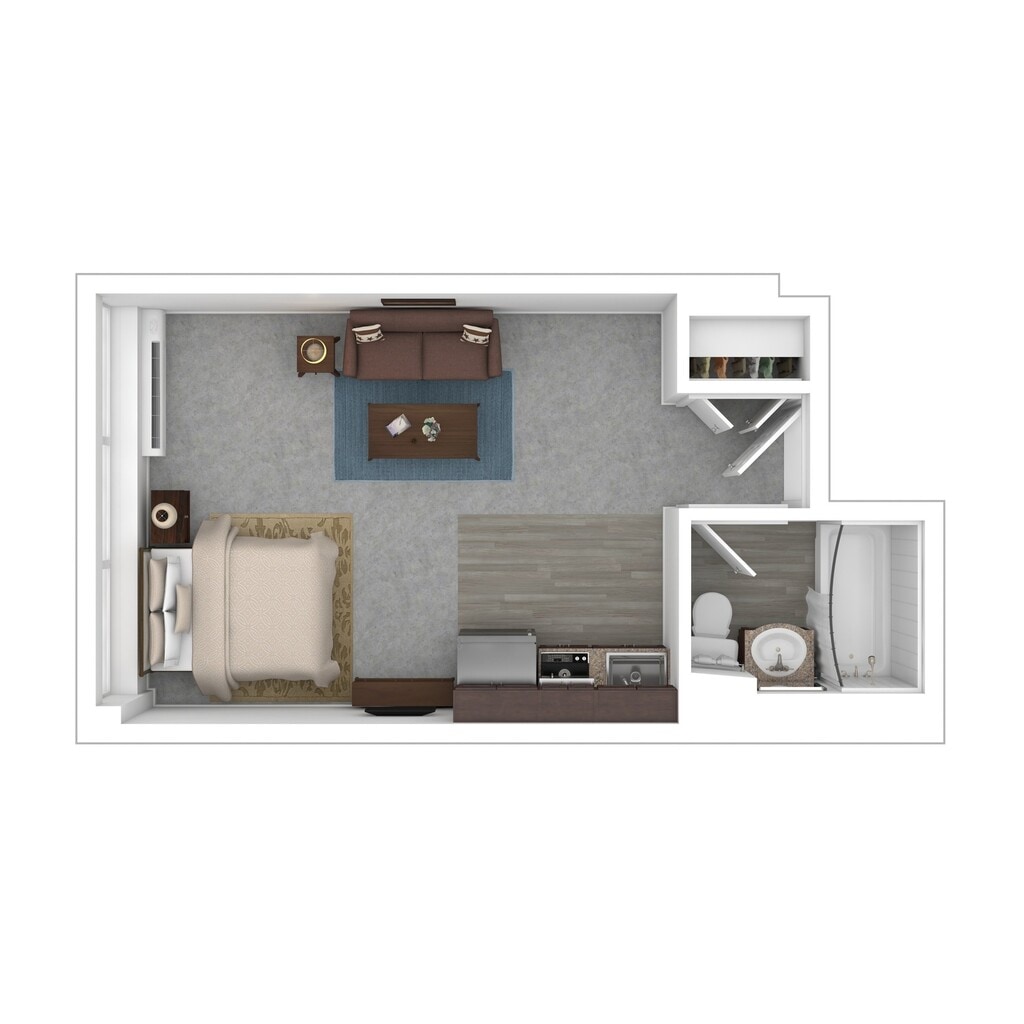 Modelo de apartamento: The Furnished Petite Studio - NLlame para PreciosEstudio, 1 Baño, 250 sq ftNo Disponible![]()