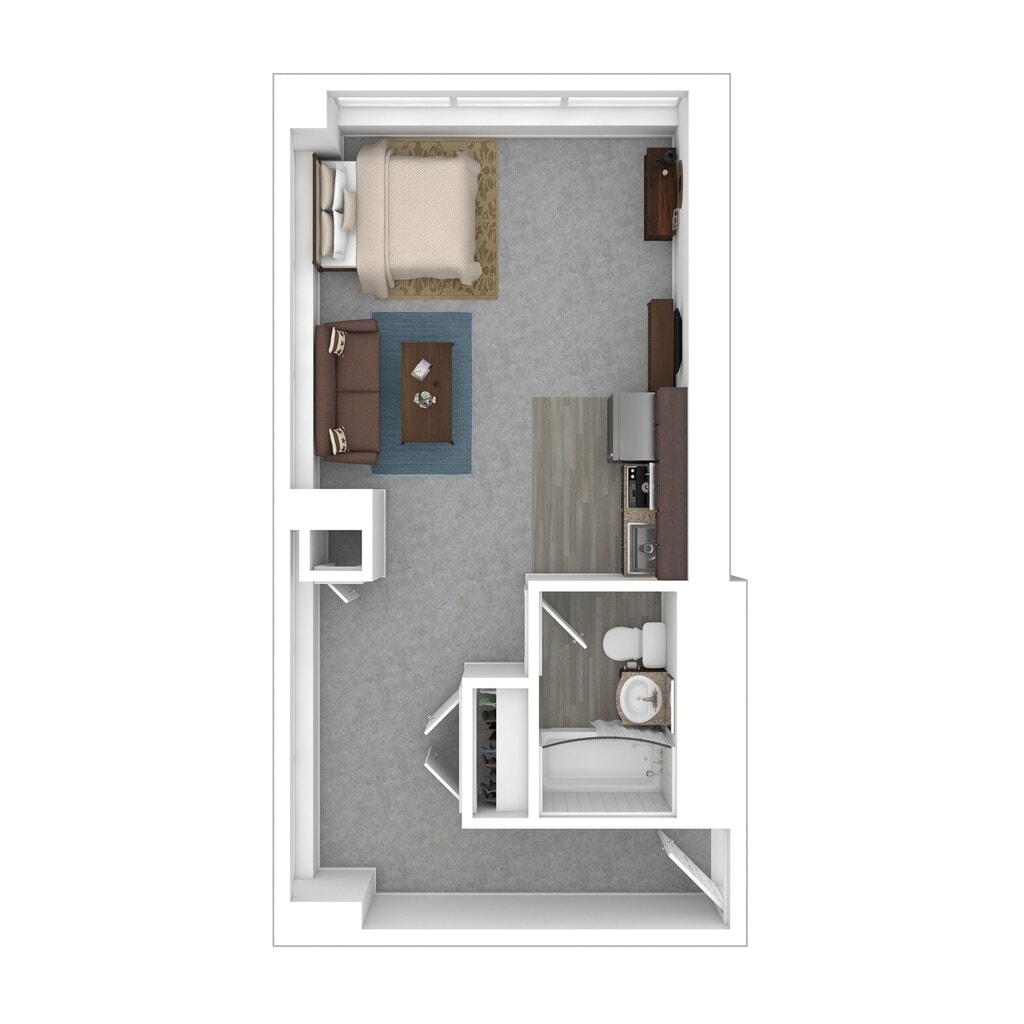 Modelo de apartamento: The Petite Studio - SDesde $1,179Estudio, 1 Baño, 290 sq ftDisponible Ahora![]()
