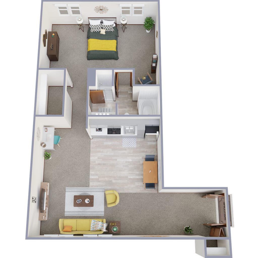 The Spruce - A - Imagen 1 Unidad de apartamento: 2256Modelo de apartamento: The Spruce - A$1,355Estudio, 1 Baño, 493 sq ftDisponible AhoraSpruce - B