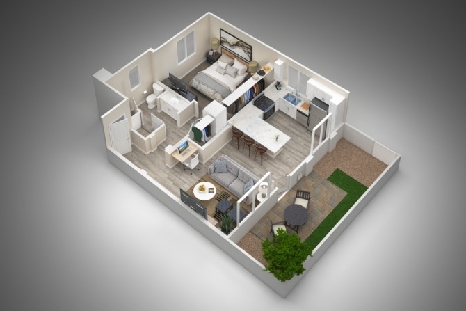 1 Dormitorio, 1 Baño, 642 pies²Disponible AhoraGalería del Modelo