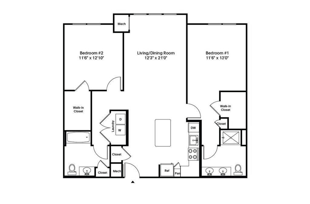 B3D - Plano 1 Unidad de apartamento: 6302Modelo de apartamento: B3D$2,8592 Dormitorios, 2 Baños, 961 sq ftDisponible AhoraPlano: B3L