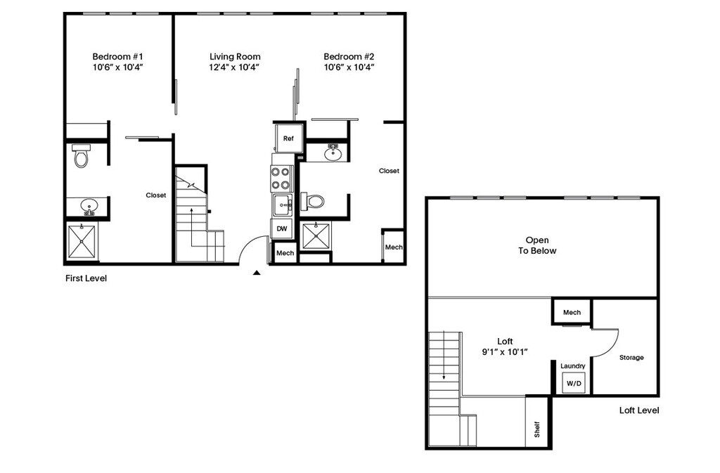 1 Dormitorio, 1 Baño, 672-677 pies²Disponible AhoraGalería del Modelo